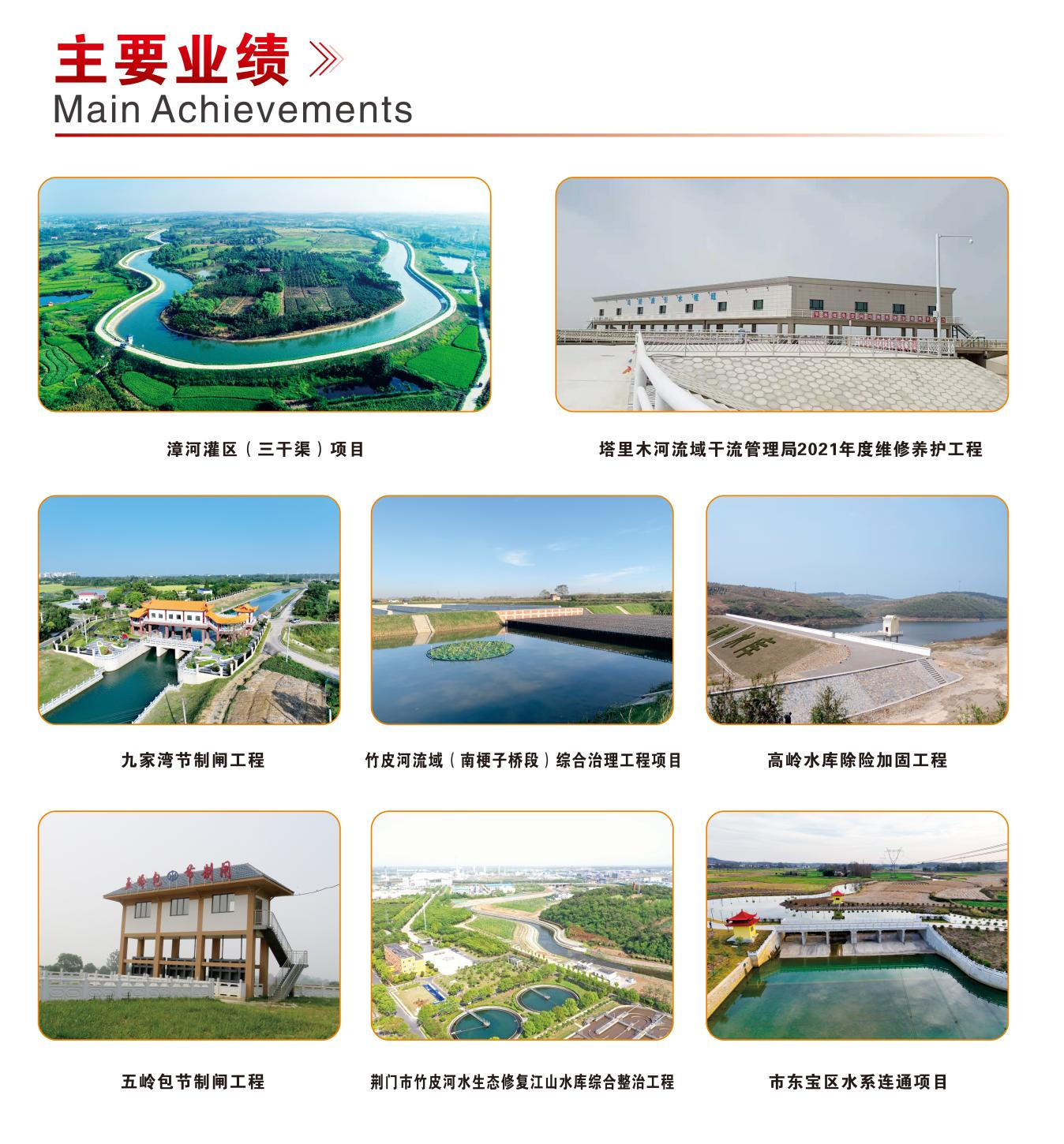 水利公司自成立以來,本著“以質(zhì)量求生存,以信譽(yù)求發(fā)展”的經(jīng)營理念,深化改革,搶抓機(jī)遇,積極拓展經(jīng)營業(yè)務(wù)。“十四五”期間完成投資超10億元,業(yè)務(wù)范圍覆蓋山東、新疆、湖北等多省市,先后承接國家大型灌區(qū)建設(shè)、水庫新建、堤防加固、泵站改造、河湖整治、流域治理、生態(tài)環(huán)境治理、農(nóng)村安全飲水、土地開發(fā)整治等建設(shè)項(xiàng)目,項(xiàng)目合格率達(dá)100%。