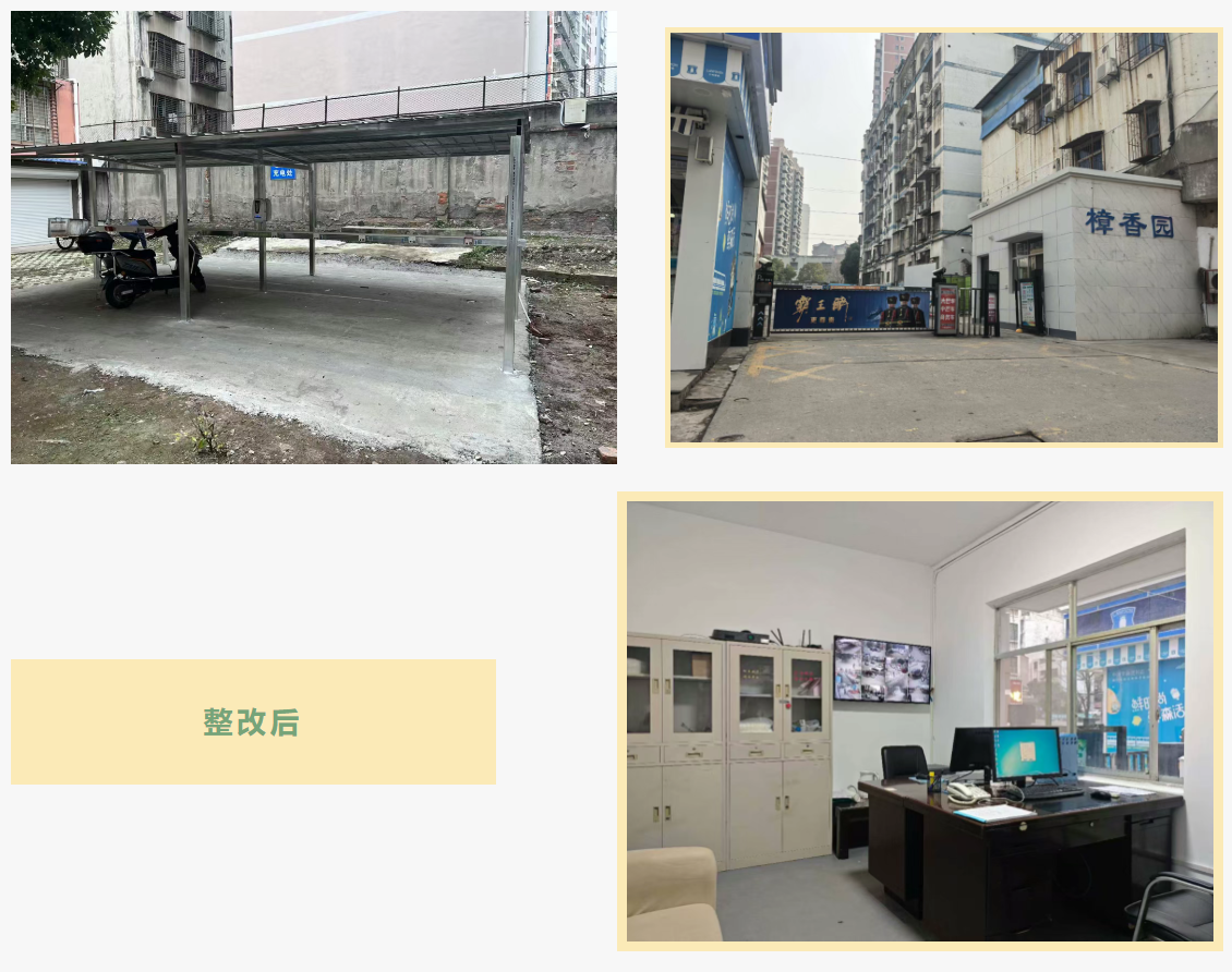 鑫泉物業(yè)公司對(duì)癥施策,改造物業(yè)辦公場(chǎng)所,設(shè)置便民窗口,實(shí)現(xiàn)公共區(qū)域監(jiān)控全覆蓋,新增太陽(yáng)能路燈,更換樓道感應(yīng)燈,新建帶充電設(shè)施的非機(jī)動(dòng)車棚,修剪綠植,清理雜物,小區(qū)環(huán)境煥然一新,居住體驗(yàn)大幅提升。