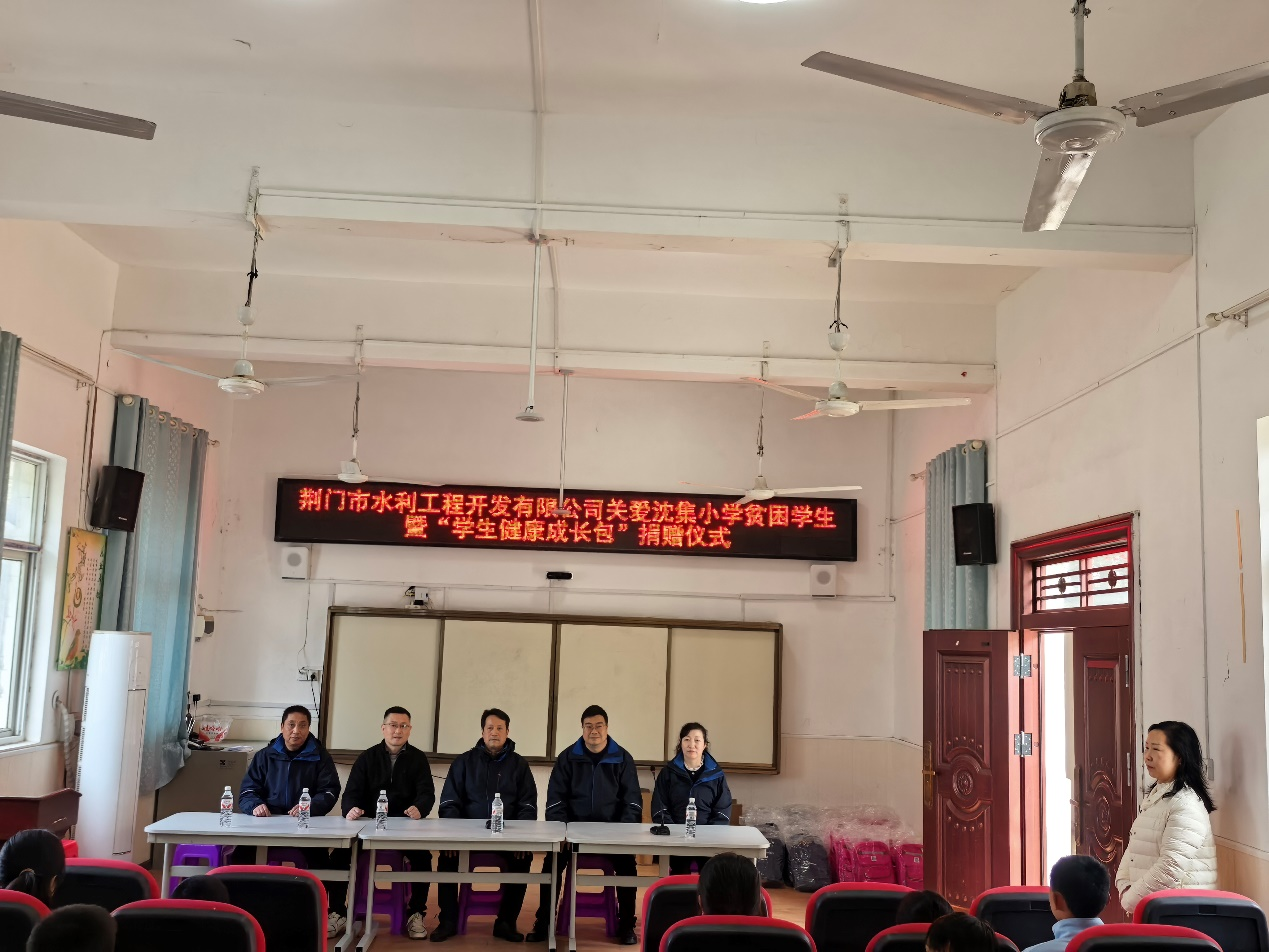 3月11日下午,荊門市水利工程開發(fā)有限公司(以下簡稱“荊門水發(fā)公司”)走進沙洋縣沈集鎮(zhèn)中心小學,開展市關工委組織的“關愛青少年健康成長包”專項捐贈活動。