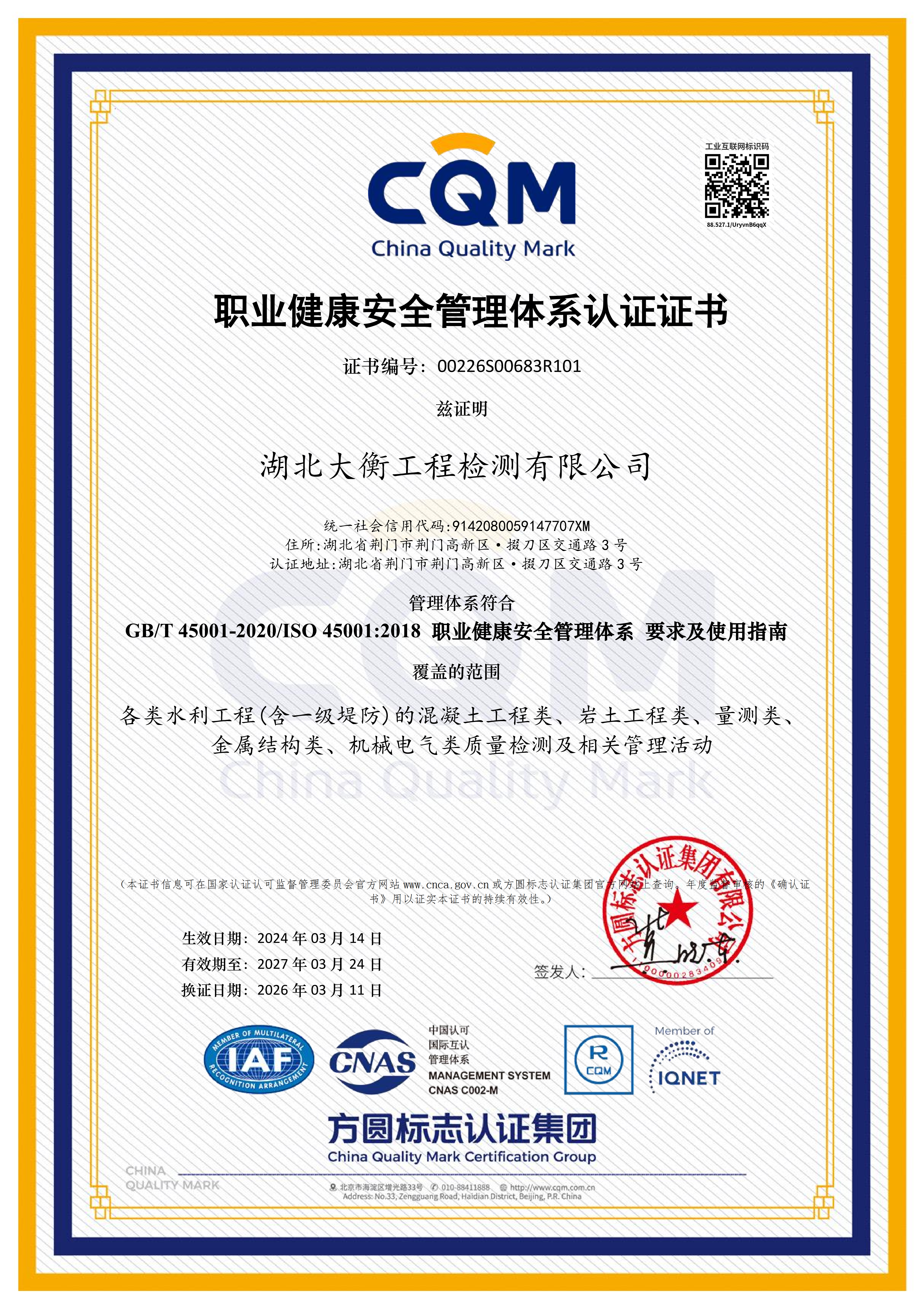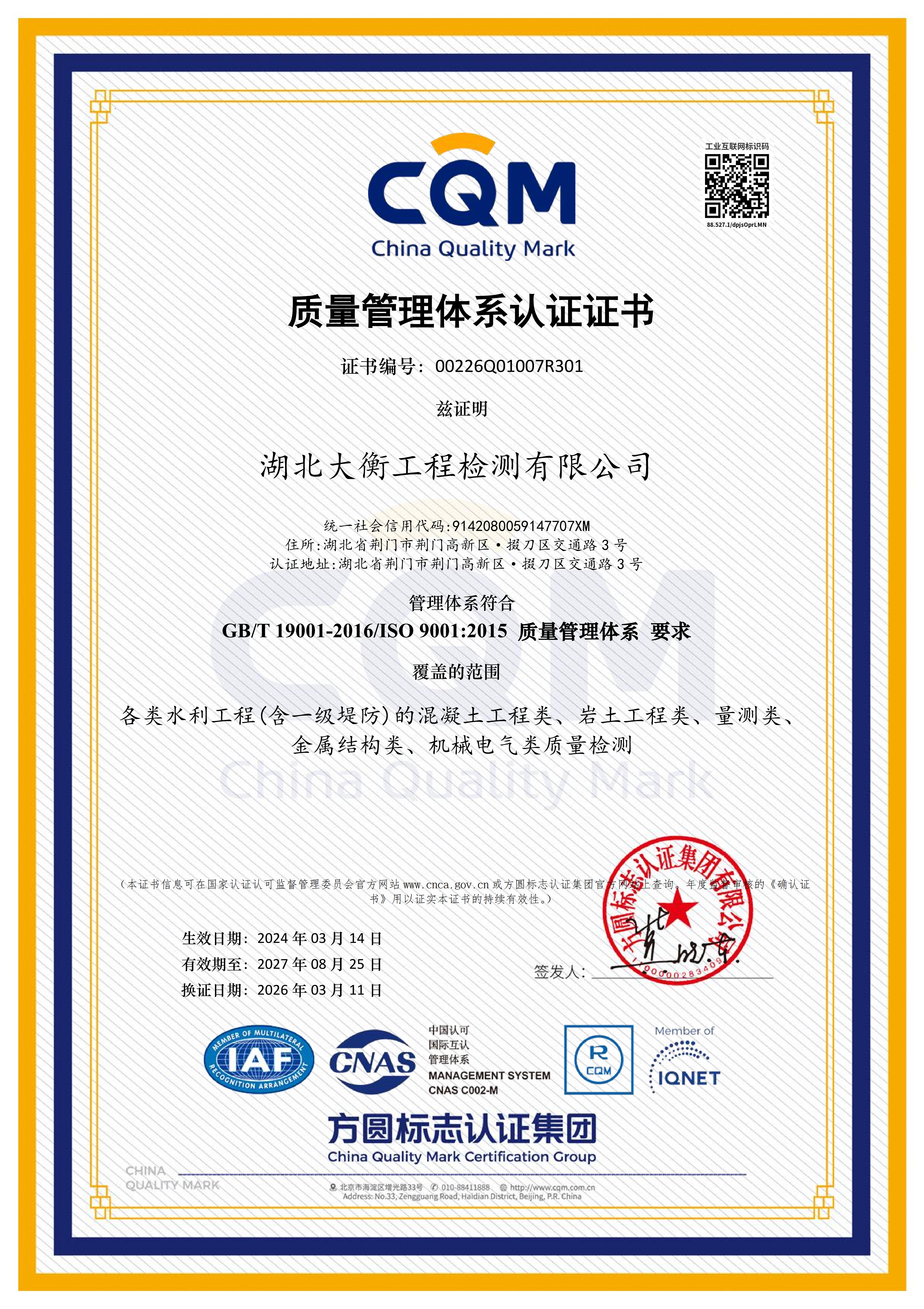 此次“QEO”三體系再認證圓滿通過,是大衡公司持續(xù)深化國企改革、夯實管理基礎、提升核心競爭力的重要體現(xiàn)。下一步,大衡公司將嚴格對標集團“十五五”質(zhì)量發(fā)展專項規(guī)劃部署,健全一體化質(zhì)量管理體系,厚植質(zhì)量文化底蘊,強化水利工程檢測全流程精細化管控,持續(xù)鍛造規(guī)范化、專業(yè)化、可靠化的水利工程檢測服務品牌,為集團高質(zhì)量發(fā)展提供堅實技術(shù)支撐與質(zhì)量保障。